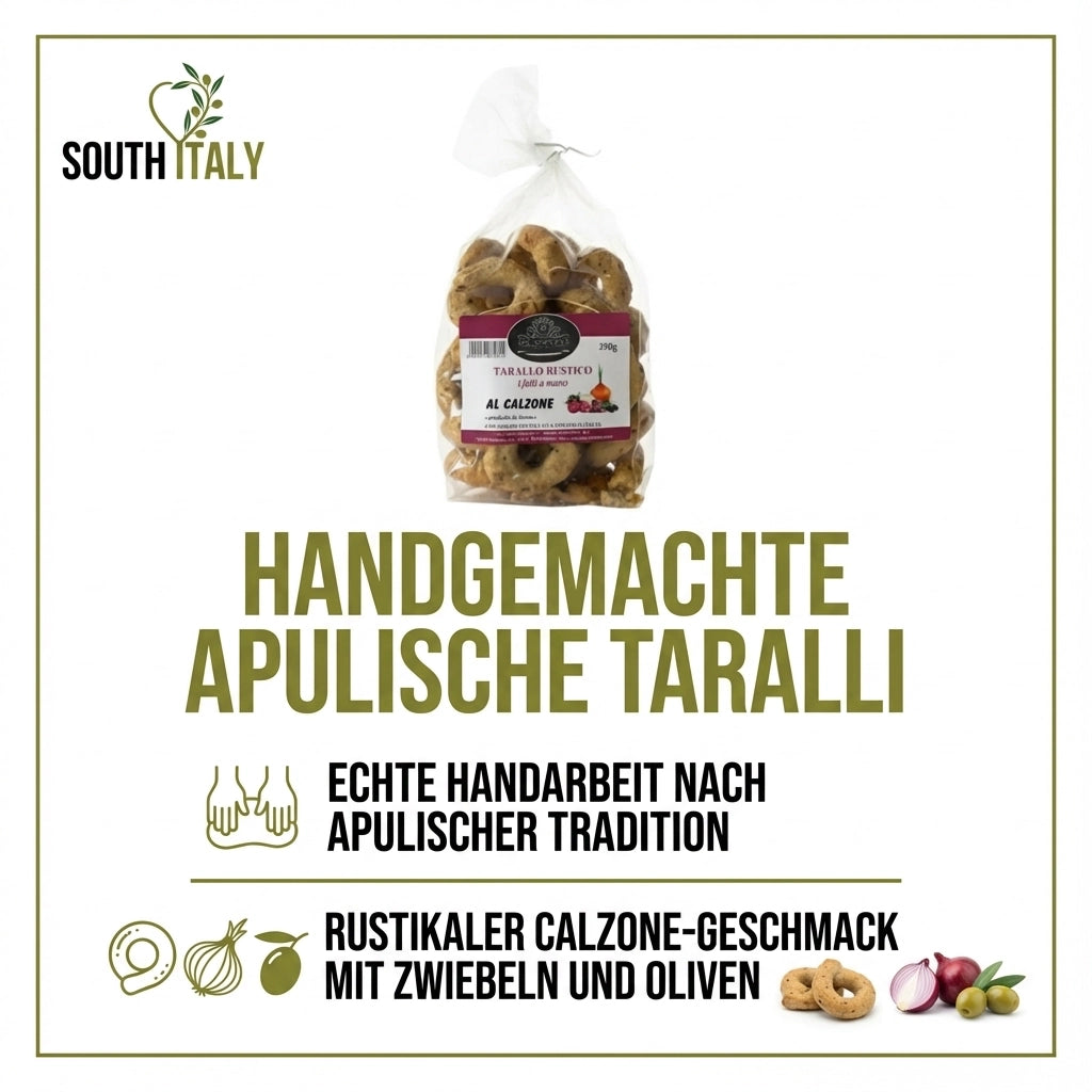 Handgemachte Apulische Taralli mit Calzone Geschmack 350g